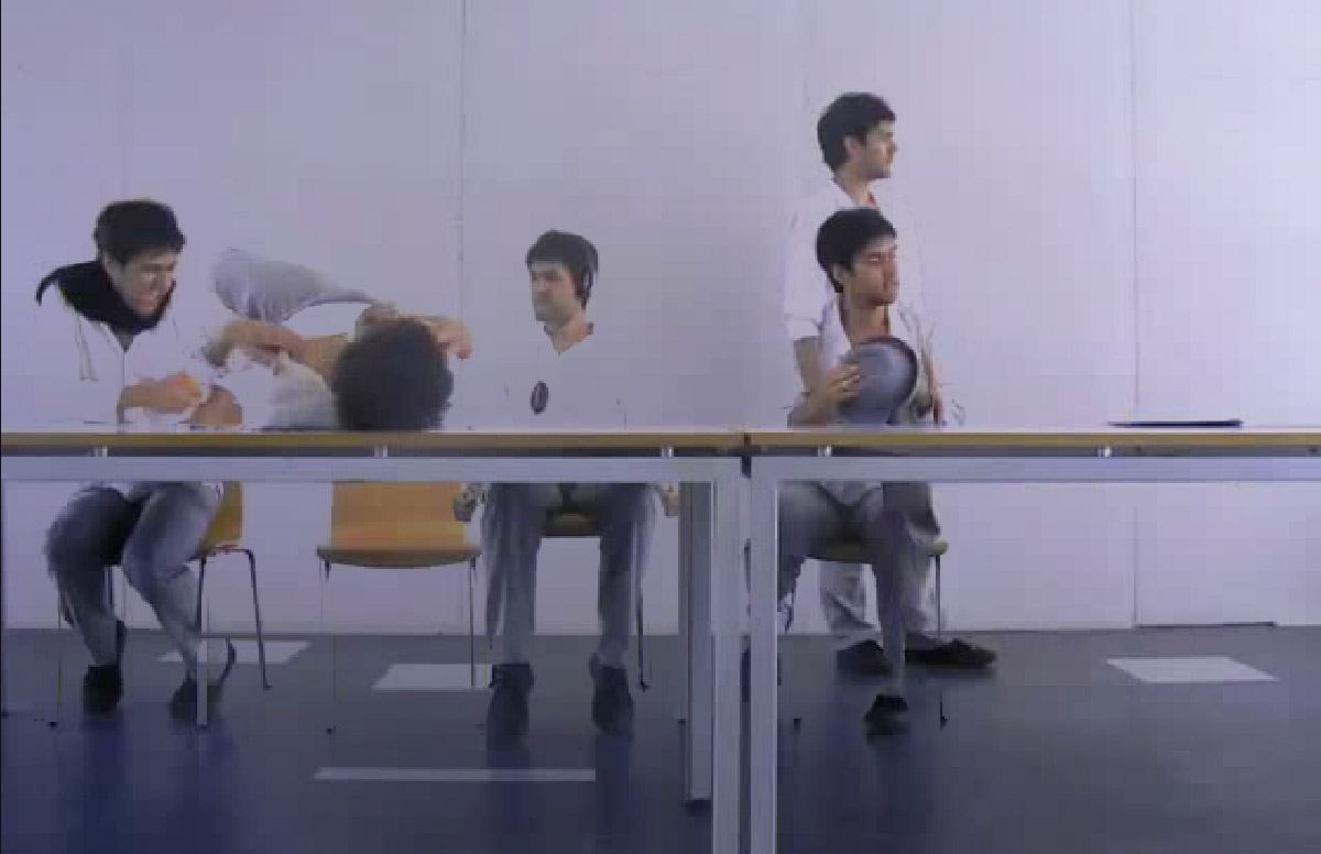The audio frequencies are the engines that make each character react. With a fast and aggressive song, narrative will be unstable and nervous. By contrast with a calm song the narrative will move smoothly.Through the analysis of the audio frequencies, the actions of each character is being discontinued, broke and discontinued.