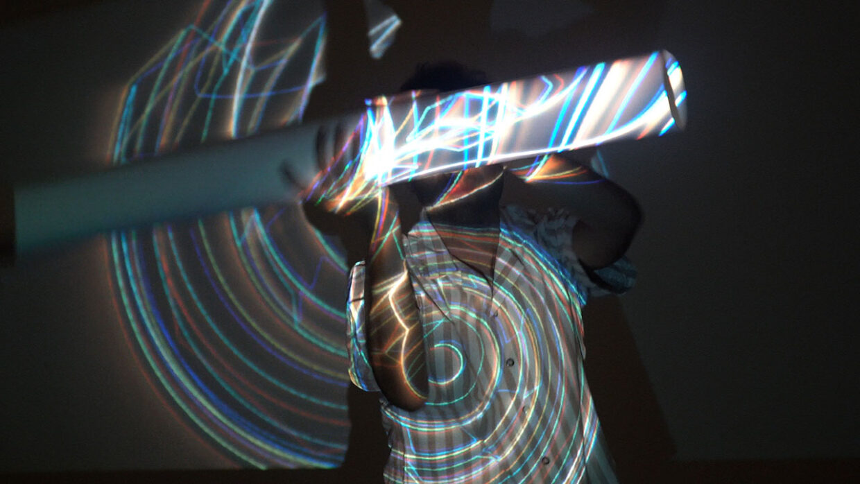 Momentum is an electronic, sonic, and visual instrument activated by the inertia of its movement when manipulated by a performer-user. This tubular object, of significant size and weight, is equipped with sensors and transmitters linked to a synthesis system that generates real-time audio and video signals based on the object’s movements during its interaction with the user. The immersive installation invites the audience to manipulate, dance, and engage in a dialogue with the sculptural object, generating spontaneous interpretations and creating what the author has termed an Openformance.