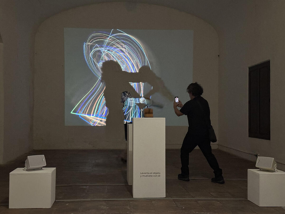Scientifically, momentum is the physical quantity that measures the amount of motion of an object and is calculated based on its weight and velocity. InĀ Momentum, this concept is manifested when the user sets the instrument in motion, challenging its inertia and entropy. The user’s interaction with the instrument generates an audiovisual response that stimulates participation, curiosity, and creativity. This feedback loop drives the performer, in their continuous movement, to gain creative momentum, discovering unique patterns and nuances in their interpretation.
