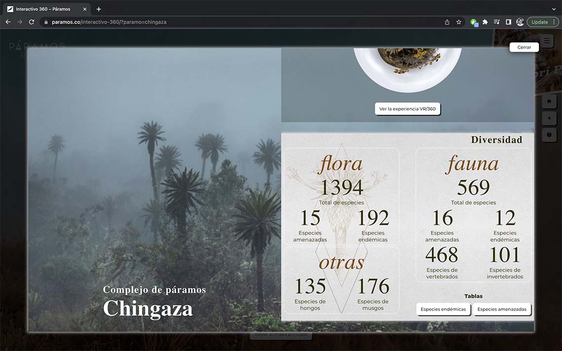 “Páramos, el país de las nieblas” and “Paramos II – El Origen” are documentary films with a transmedia platform that explores the beauty, importance, and threats facing páramos, a type of high-altitude ecosystem found in Colombia. The film and platform were created by Animafauna, Señal Colombia and Fotosíntesis Colombia SAS, and they were released in December 2022. Setian was encharged of the concept, design and development of the Transmedia Platform